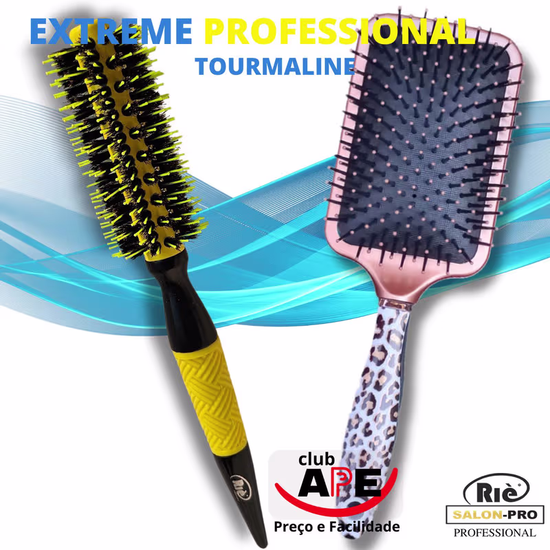 COMPOSTO POR: 01 Escova Extreme Professional Tourmaline 47 mm MARCA: RIÈ salon-pro DIÂMETRO: 47 MM CERDAS: 100% Javali CABO: Ergonômico - Madeira Revestido - Durabilidade e leveza da Madeira e Mais Conforto para suas mãos BASE: Tourmaline e Cerâmica - -Brilho Extremo + Anti-frizz e anti estática - Frizz reduzido e seus fios super alinhados e Brilho Incrível A Extreme Professional Tourmaline modela e alisa facilmente os seus cabelos, enquanto dá muito brilho aos fios. A Escova de Cabelo Riè Salon-Pro Extreme Professional Tourmaline reduz o frizz e deixa o cabelo alinhado. Ela libera 6 vezes mais íons negativos e micro partículas de turmalina, além de distribuir uniformemente e reter o calor. Desse modo, evita a quebra dos cabelos, revitaliza o couro cabeludo e dá maciez.