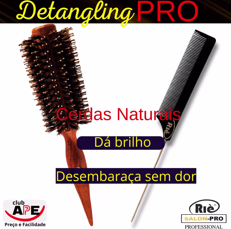 KIT COMPOSTO POR: 02 ESCOVA DETANGLING PRO 57 MM + 01 PENTE CARBONO PREMIUM MARCA: RIÈ salon-pro DIÂMETRO: 57 MM CERDAS: 100% JAVALI CABO: Madeira - inteiro BASE: MADEIRA CARACTERÍSTICAS - ESCOVA DETANGLING PRO > Ultra - Desembaraçante; > Brilho incrível; > Cerdas 100% Naturais Javali + Pinos Tracionadores de Nylon; > Cabo de madeira premium; > Tipos de cabelos ideal para todos tipos de cabelo. PENTE CARBONO PREMIUM > Resultado Profissional; > Anti-Frizz; > Ultra-Desembaraçante; > Anti-estática. Escova de cabelo RIÈ salon-pro Detangling ajuda a desembaraçar facilmente os indesejados nós enquanto dá brilho aos fios. A Escova RIÈ salon-pro Detangling Pro conta com a combinação na proporção ideal de cerdas naturais e de nylon que permitem que você desembarace sem dor enquanto obtém brilho graças às cerdas naturais que massageiam o couro cabeludo.