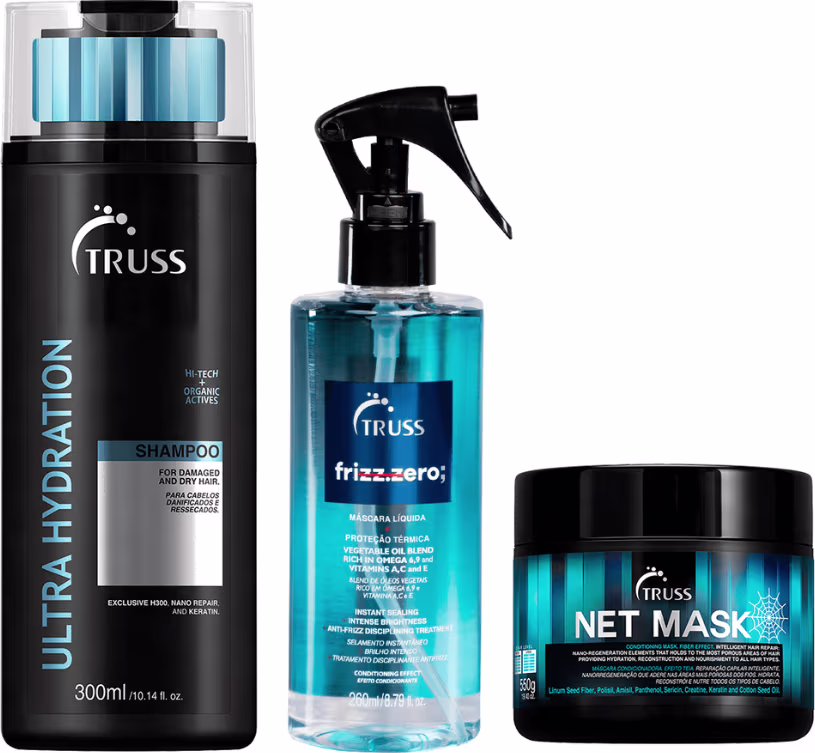 Kit Ultra Hydration Shampoo + Máscara Frizz Zero e Máscara Net Mask - Truss