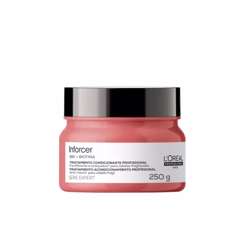 O Shampoo L'Oréal Professionnel Serie Expert Inforcer 1,5L possui fórmula enriquecida com Biotina e Vitamina B6, ativos reconhecidos por promoverem resistência e auxiliarem na redução da quebra. Já a Máscara L'Oréal Professionnel Serie Expert Inforcer 250g garante hidratação intensa e reposição de nutrientes, recuperando a vitalidade e a maciez dos fios. A linha conta com tecnologia avançada que trata o cabelo sem pesar, deixando-o mais forte, sedoso e com movimento natural.