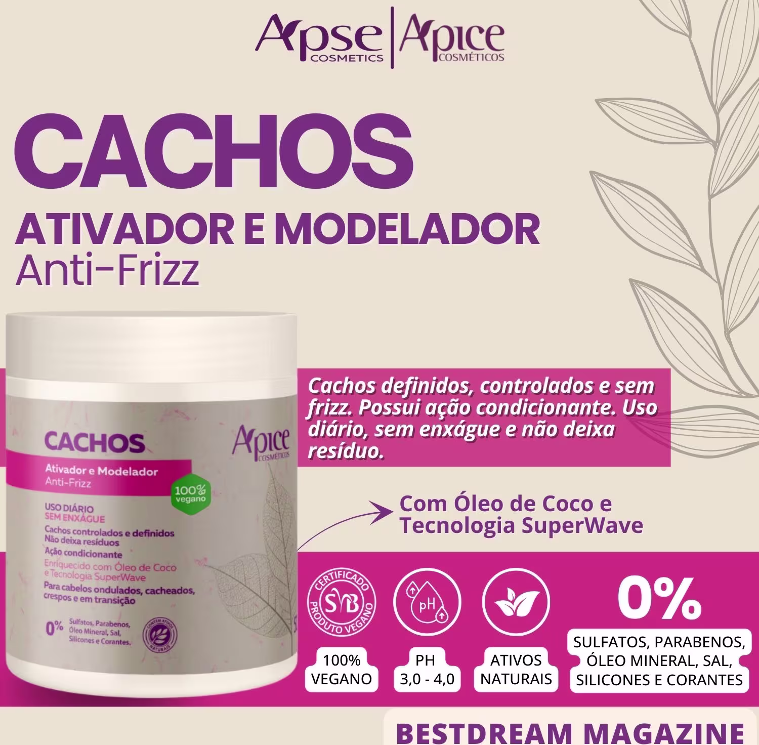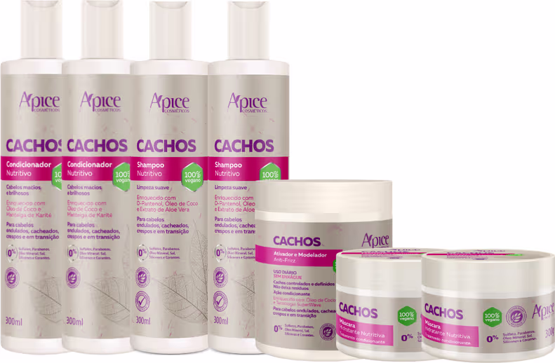 Kit Apse Cachos Linha Tratamento Capilar Vegano 7 Produtos Apice