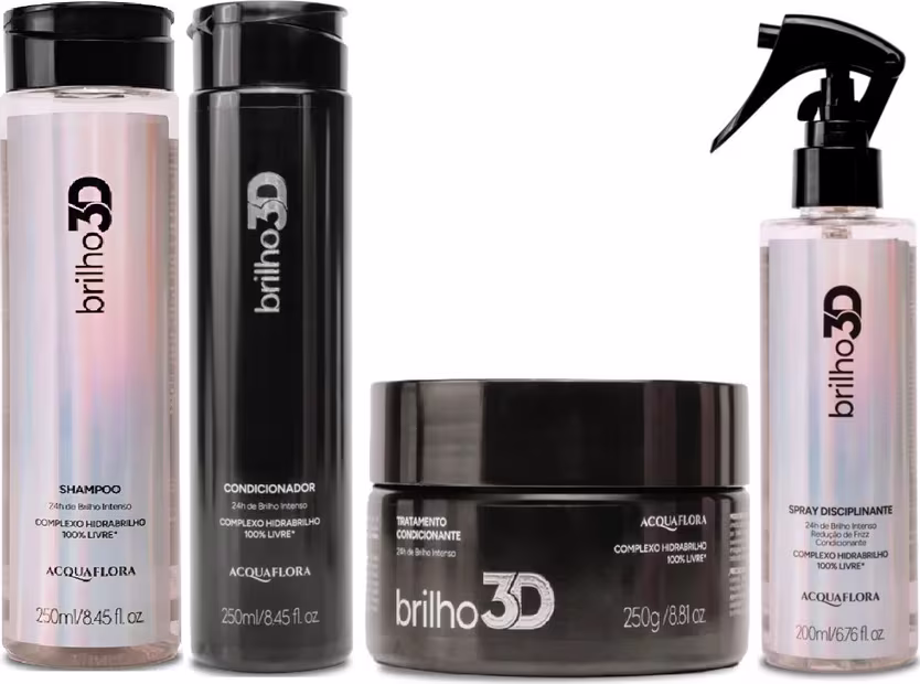 Kit Acquaflora Brilho 3D Shampoo + Condicionador + Máscara + Spray ( 4 Produtos )