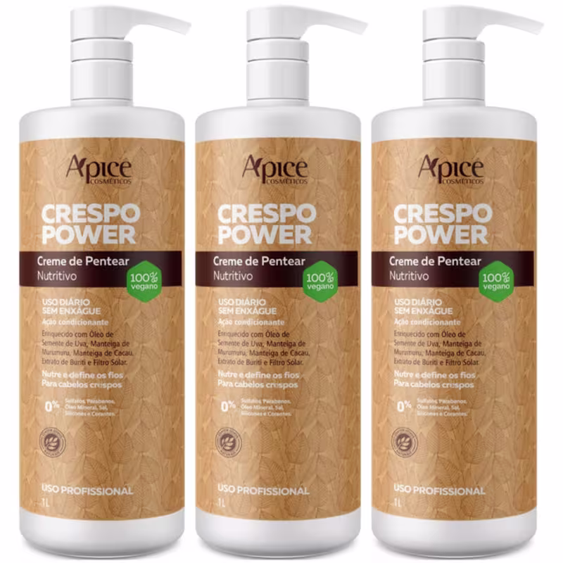 Kit 3 Creme De Pentear Nutritivo Apse Apice Crespo Power Vegano Profissional Uso Diario 1L