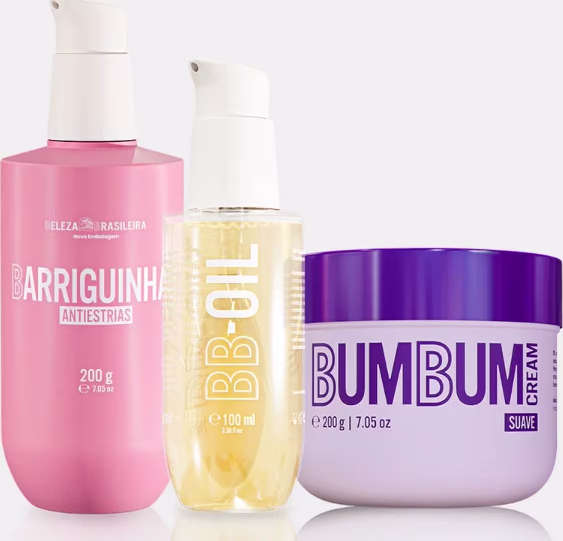 Cuide da sua pele com o Kit Cuidado Antiestrias, a combinação perfeita para prevenir, reduzir e suavizar estrias enquanto promove hidratação intensa e elasticidade. Composto por 1 Bumbum Cream Suave 200g, 1 Barriguinha Cream Antiestrias 200g e 1 BB-Oil 100ml, este kit é ideal para todas as fases da vida, incluindo gestação e pós-parto.