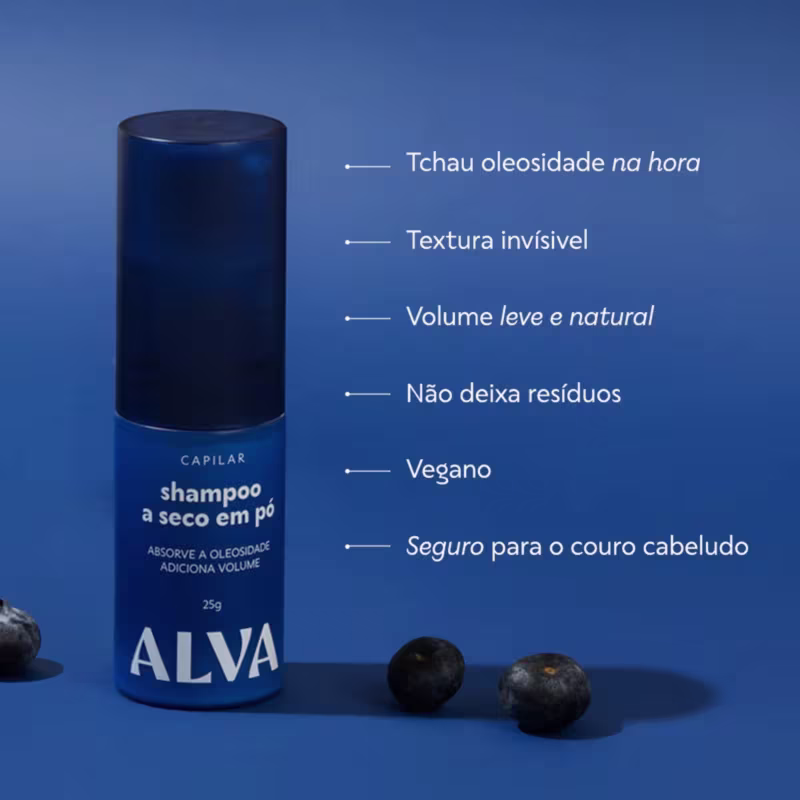 Shampoo a Seco.pdf: > "O Shampoo a Seco em Pó da Alva é a solução prática e eficaz para quem precisa revitalizar os fios, absorver oleosidade e adicionar volume."