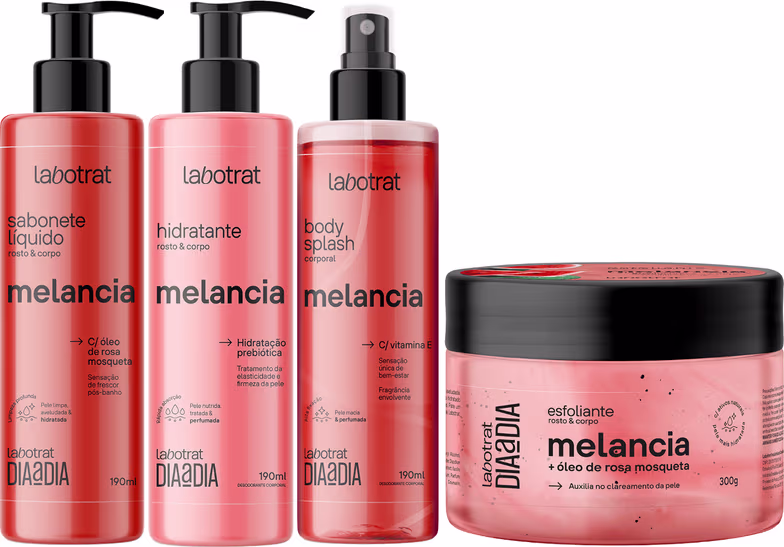 Kit Banho Premium Labotrat Melancia Completo 4 Produtos C/ Body Splash Corpo E Rosto Cheiro De Fruta