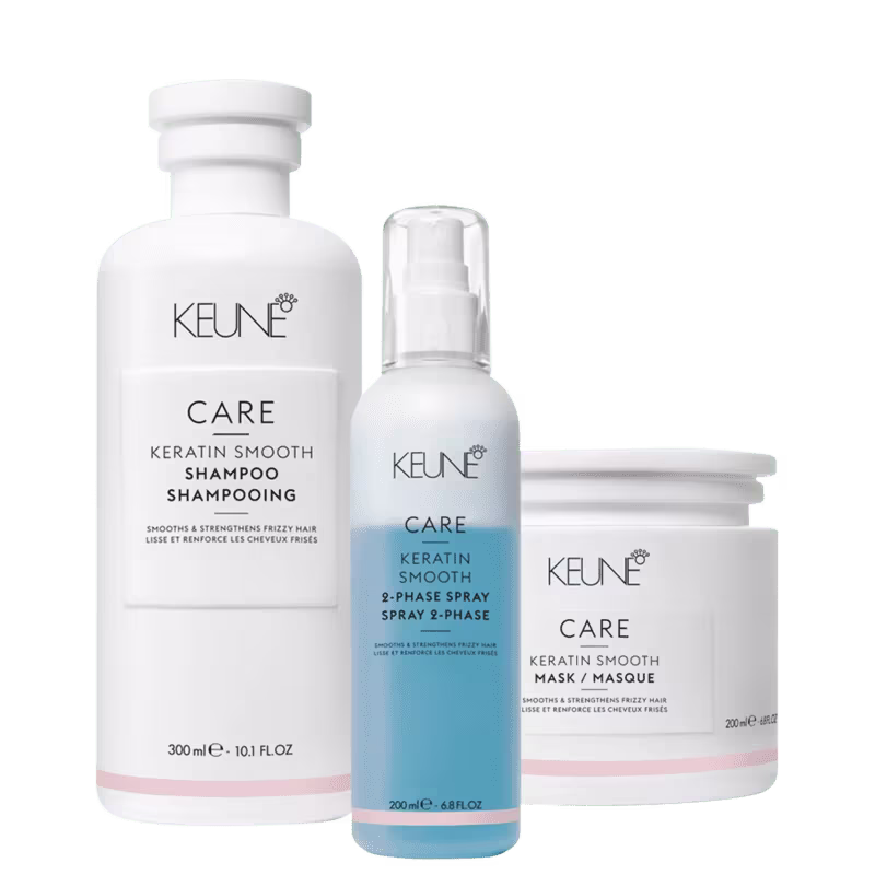 Keune Care Keratin Smooth - Shampoo 300ml: indicado para a reconstrução de áreas fragilizadas nos cabelos finos a médios, principalmente aquelas com danos causados por mechas e alisamentos, o Care Keratin Smooth Shampoo aumenta a defesa dos fios de dentro para fora. Sua fórmula repõe a fibra capilar perdida nas agressões químicas sofridas pelo cabelo.