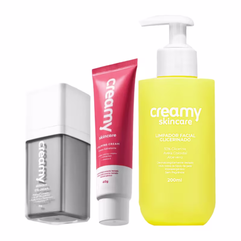 Kit Creamy Eye Cream + Calming Cream + Limpador Glicerinado – Hidratação, Limpeza e Cuidados