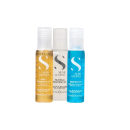 - Ampola Azul Alfaparf Semi Di Lino Sublime Essential Oil: revitaliza e proporcionar suavidade desde a primeira aplicação, conferindo um efeito luz que enriquece a fibra capilar e reduz asperezas superficiais, deixando o cabelo extremamente macio e brilhoso.