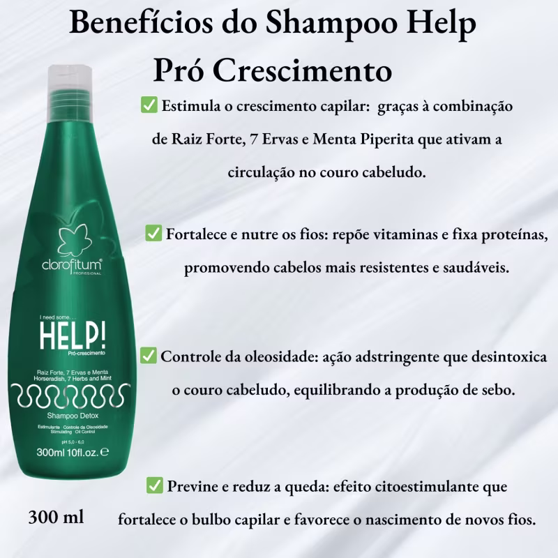 01 Shampoo Help Pró-Crescimento 300ml Clorofitum