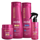 Kit de rotina completa para alinhar fios, controlar o frizz, prolongar o efeito liso e com proteção térmica