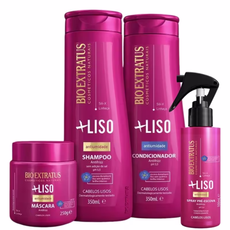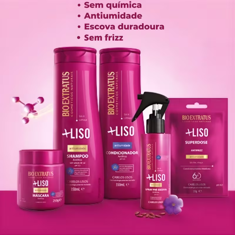 Não sei o CEPO kit Bio Extratus +Liso reúne uma rotina completa de cuidado para cabelos que buscam alinhamento, controle do frizz e efeito liso prolongado desde a lavagem até a finalização.