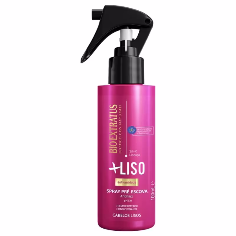 O spray finalizador pré-escova completa a rotina com ação termoativada, protegendo contra o calor do secador e da prancha enquanto prolonga o efeito liso. Ele cria um escudo disciplinante que reduz o frizz, melhora o deslizamento da escova e mantém o cabelo alinhado por mais tempo.