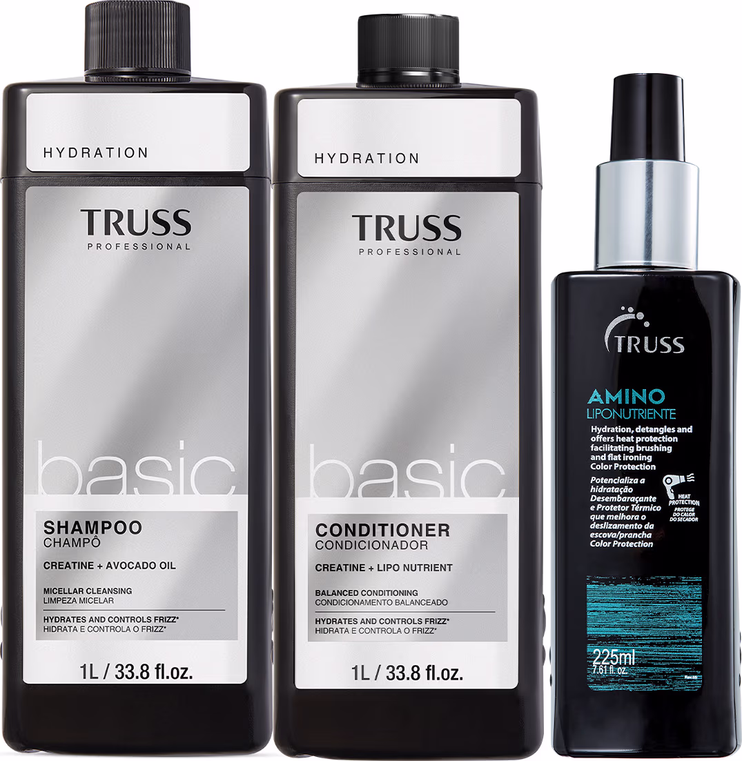 Combo TRUSS Cuidado Basic: Shampoo 1l + Condicionador 1l + Protetor Térmico Amino 225ml