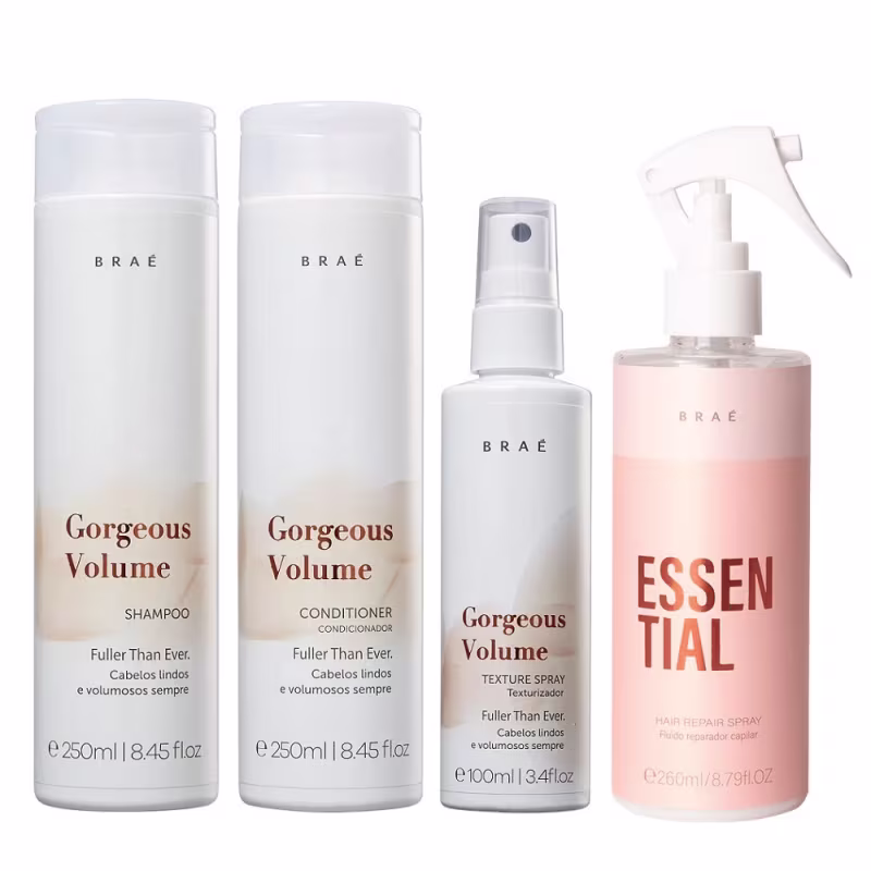 Kit Braé Gorgeous Volume - Shampoo & Condicionador 250ml + Spray Texturizador 100ml + Essential Spray 260ml