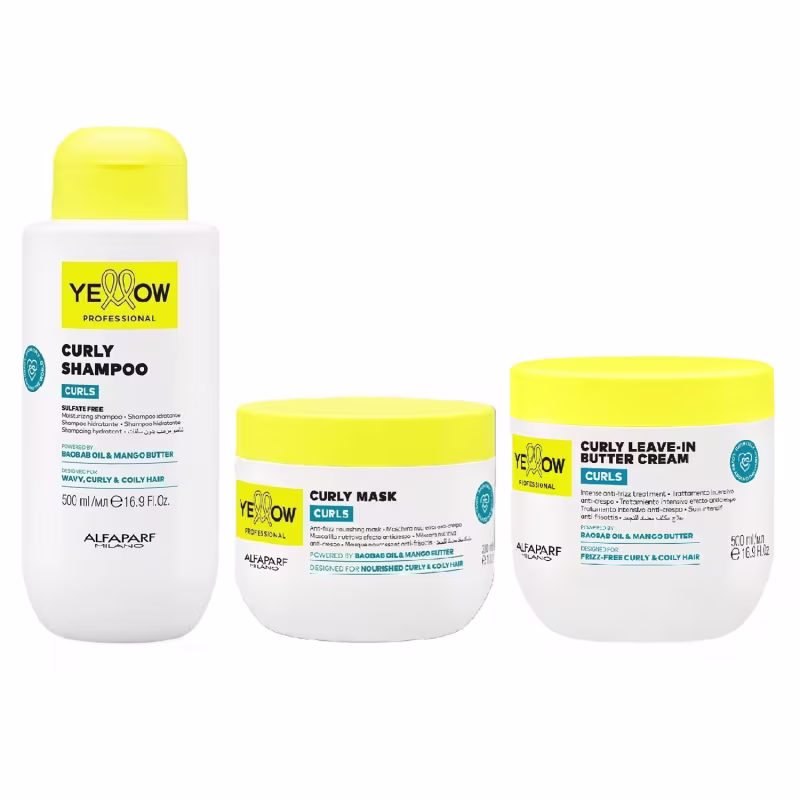 Kit Yellow Curls - Shampoo 500ml + Máscara 300ml + Leave-In Butter Cream 500ml