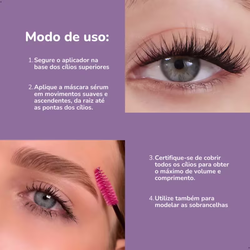 Produto 2 em 1 O sérum pode ser usado tanto nas sobrancelhas quanto nos cílios.
