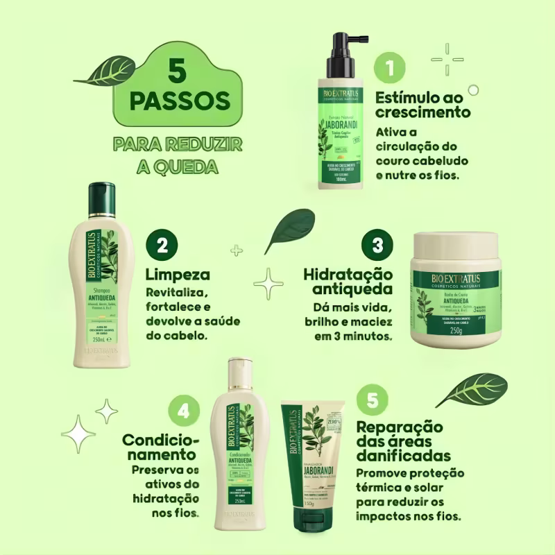 Tratamento antiqueda completo com shampoo, condicionador, máscara e finalizador Bio Extratus Jaborandi.