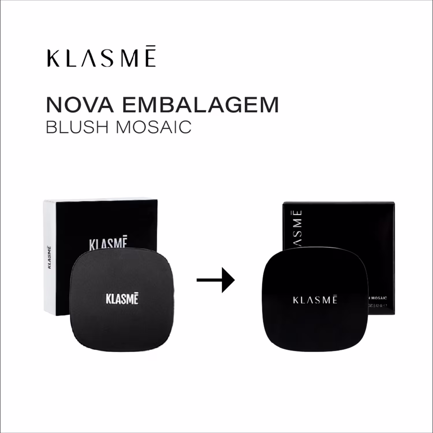 Blush Klasme Mosaic apresenta cores que podem ser misturadas ou usadas separadamente para criar o tom e efeito conforme a sua preferência: rosa escuro, rosa claro, pêssego e coral. Tem alta pigmentação, brilho sutil e textura acetinada. O pincel acoplado à embalagem possui formato diferenciado e permite fácil retoque ao longo do dia.