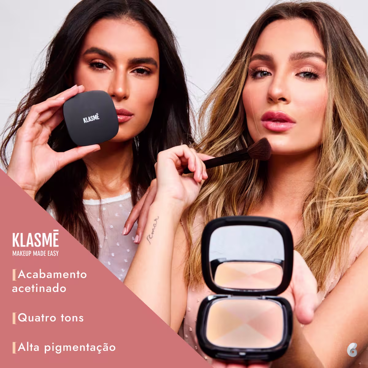 Blush em pó com acabamento acetinado. Klasme Mosaic traz quatro tons para realçar as maçãs do rosto com leve luminosidade.