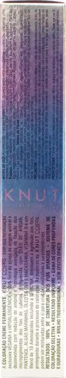 Precauções: recomendada a utilização da Coloração Knut Color com a ajuda de um profissional. Gestantes e lactantes devem consultar seu médico antes de fazer o uso. Não deve ser aplicado em menores de 15 anos. Indicamos que seja realizado o teste de toque e mecha antes de fazer o procedimento. Em caso de irritação ou ferida pré-existente no couro cabeludo, consulte um médico antes da aplicação. No caso de sensibilização, suspenda o uso imediatamente e procure orientação médica. É recomendado ficar até 2 dias sem lavar o cabelo antes de usar a tinta nos fios. Uso externo. Evite o contato com os olhos e no caso de ocorrer, lave-os com água em abundância. Mantenha o produto fora do alcance das crianças e de animais domésticos.