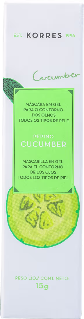 Máscara para contorno dos olhos. Korres Pepino, com textura em gel que refresca e hidrata, melhora a aparência da região e é indicado para todos os tipos de pele.