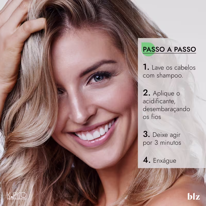 Acidificante para cabelos quimicamente tratados. K.Pro Veganíssima equilibra o pH dos fios, restaurando saúde e beleza.