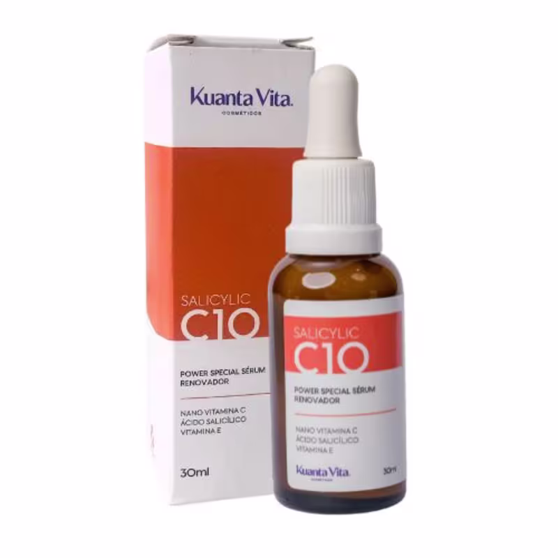 O Sérum Facial Kuanta Vita Salicylic C10 foi desenvolvido para peles mistas e oleosas que buscam um tratamento completo de renovação cutânea. Formulado com uma combinação estratégica de Ácido Salicílico, Vitamina C 10 e Vitamina E, este sérum proporciona uma abordagem multifuncional para os cuidados da pele.