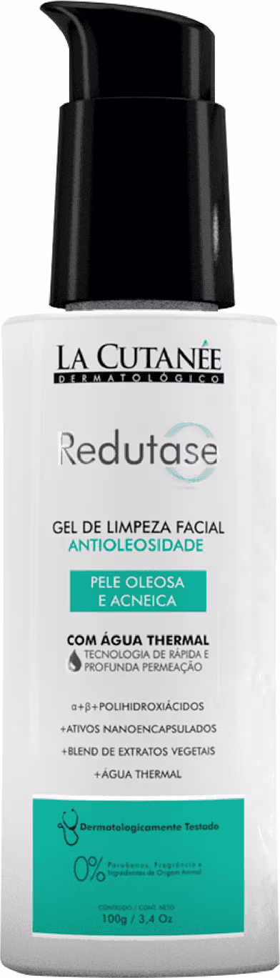 Gel de limpeza facial para pele oleosa. La Cutanée Redutase desobstrui poros, reduz a oleosidade e o excesso de brilho, proporcionado efeito matte.