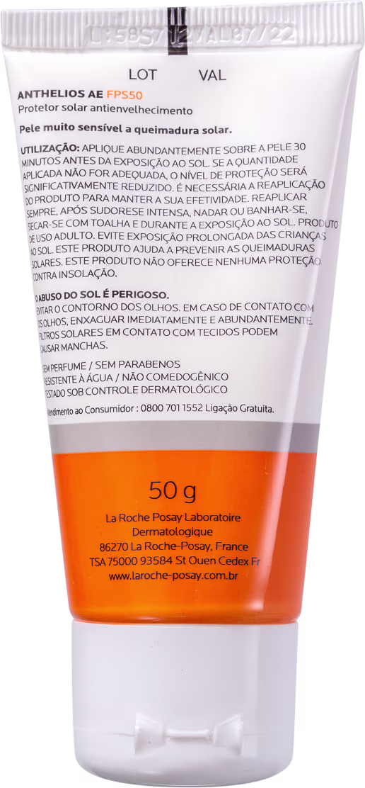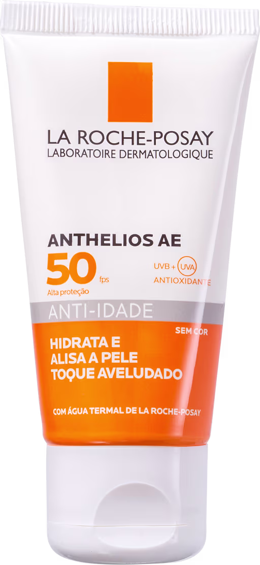 Protetor Solar La Roche-Posay Anthelios AE FPS50 oferece alta proteção solar, melhora a textura e apresenta fórmula completa com uma ação global que clareia a pele e preenche as linhas e outros sinais da idade.