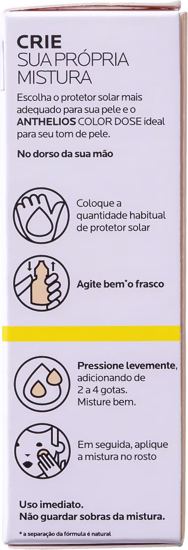Pigmento com cor para personalizar o protetor solar. La Roche-Posay Anthelios Color Dose uniformiza as imperfeições e cria uma barreira física na sua pele.