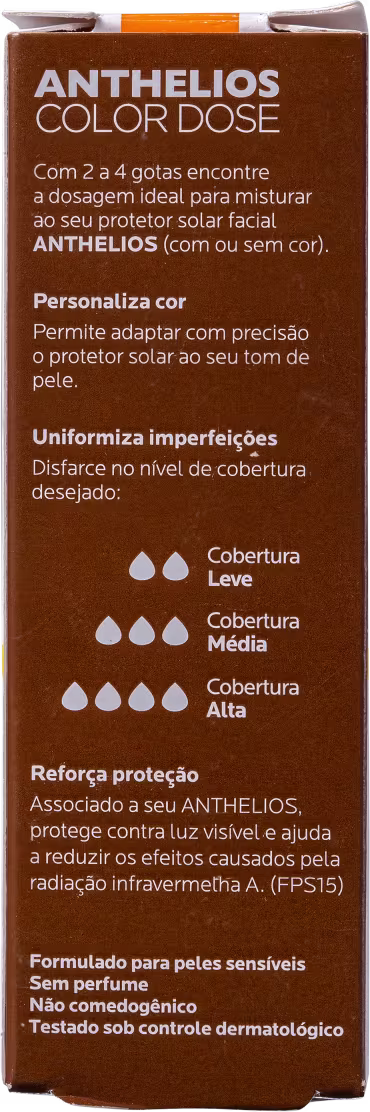Pigmento La Roche-Posay Anthelios Color Dose é um pigmento para personalizar a cor do seu protetor solar facial. Ele não possui fator de proteção contra os raios UV, só garante que seu filtro solar Athelios fique na cor do seu tom de pele e reforça a barreira de proteção contra a luz visível.