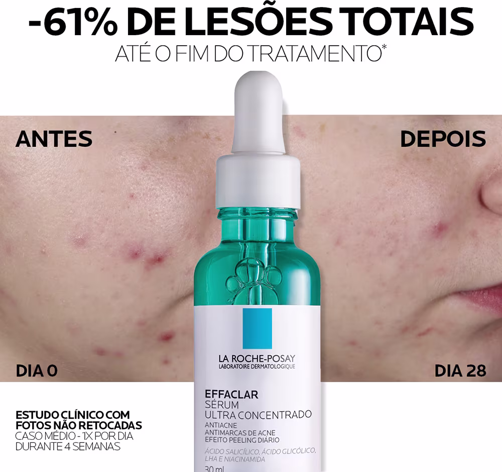 Sérum antiacne. La Roche-Posay Effaclar Ultra Concentrado é a solução para peles adultas com tendência à acne. Sua fórmula inovadora combate espinhas, cravos e marcas, promovendo uma renovação diária da pele com ação calmante, para um rosto mais uniforme e saudável.