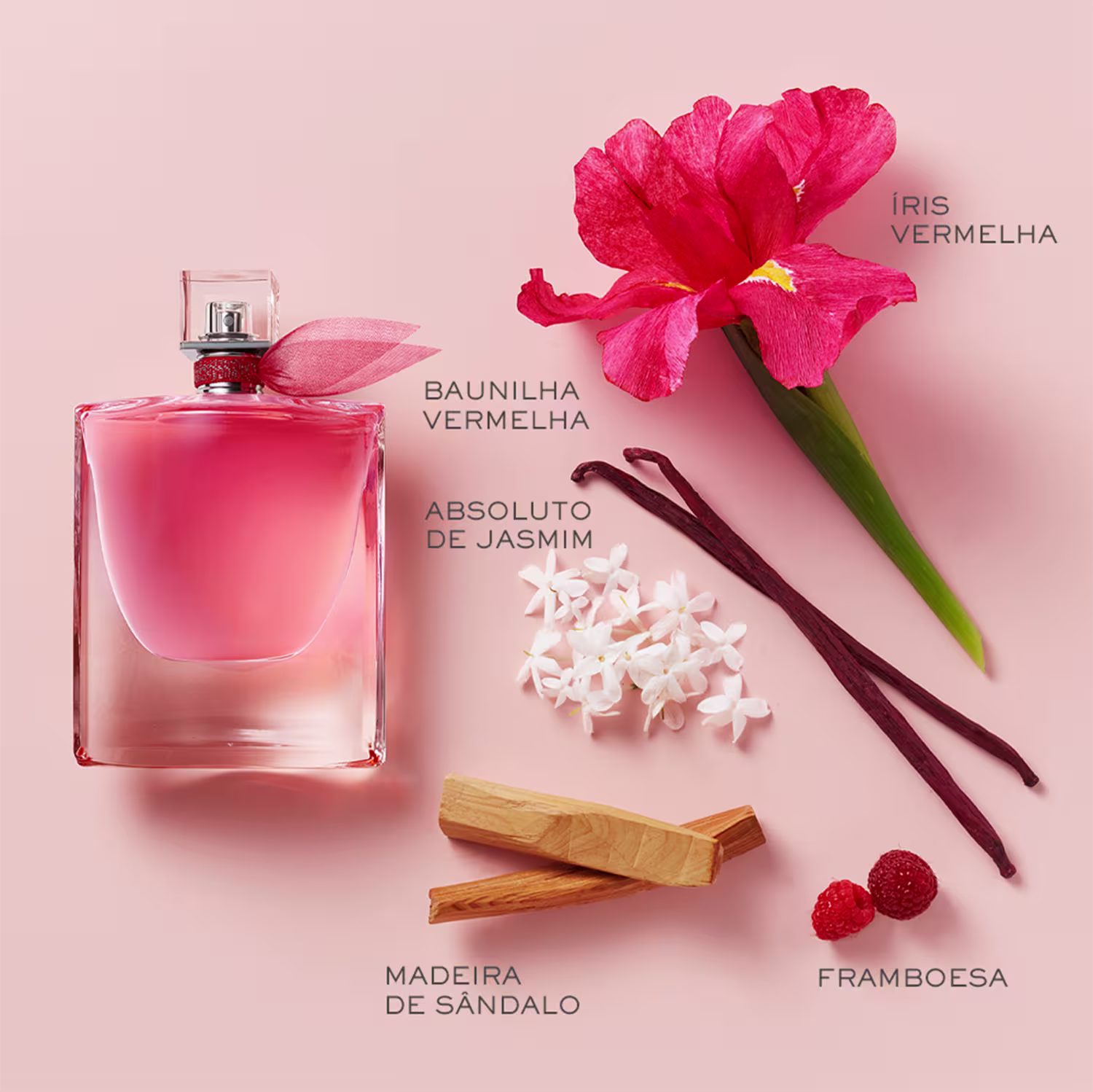 As notas gourmands já conhecidas e adoradas de La Vie Est Belle combinadas a novas essências de personalidade ainda mais otimista e vibrante. A abertura de bergamota, pimenta rosa e morangos suavemente adocicados evolui para um coração deliciosamente floral e sofisticado, tomado pelo jasmim sâmbac, flor de laranjeira, e heliotrópio abaunilhado. Ao fundo, a fragrância harmoniza a íris vermelha com a familiar baunilha e mais notas quentes.