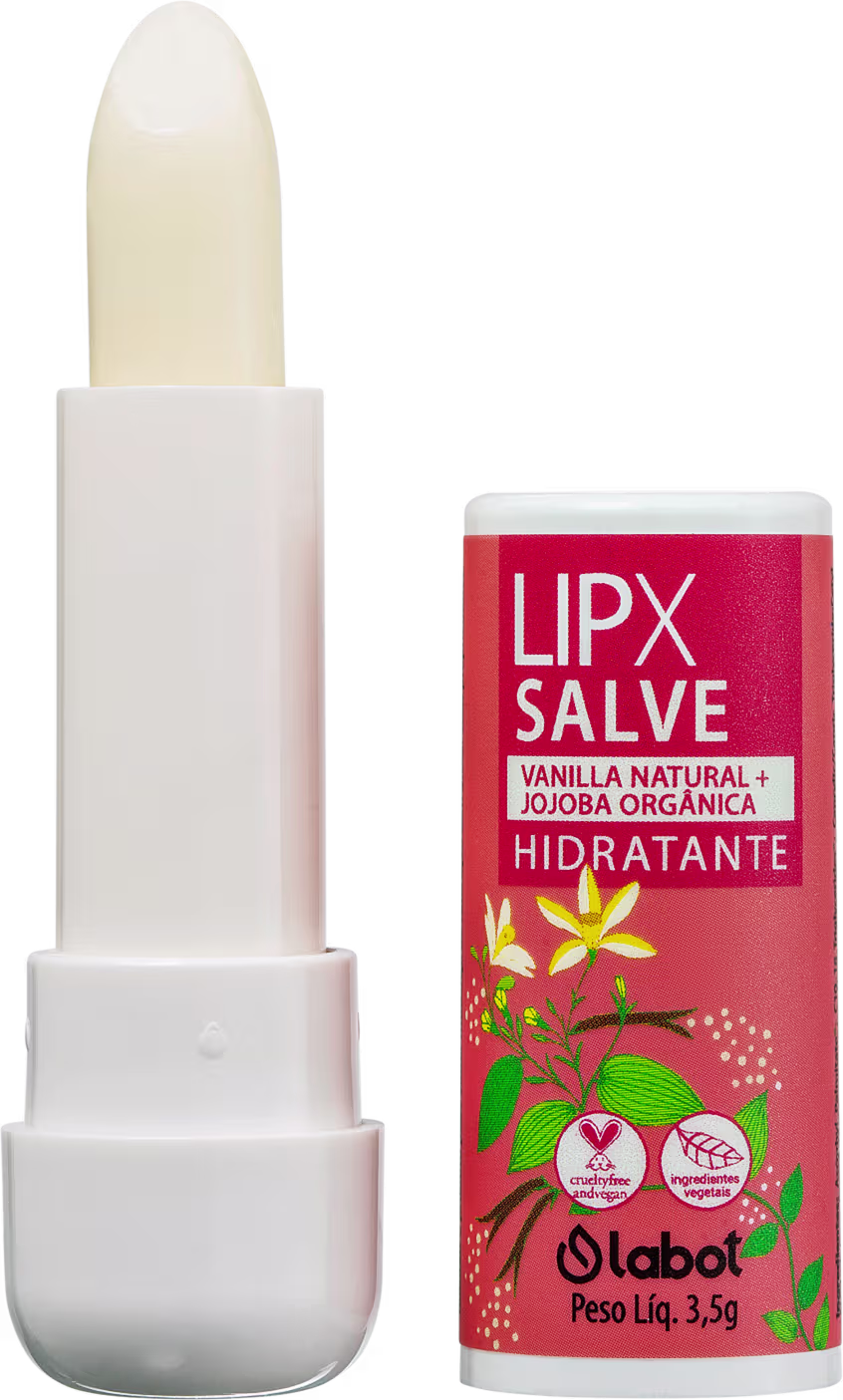 O Hidratante Labial Labot Lipx Salve tem fórmula enriquecida com óleo de jojoba orgânico, que hidrata e acalma a pele dos lábios. Sua textura leve, com aroma de baunilha, traz conforto durante todo o uso.