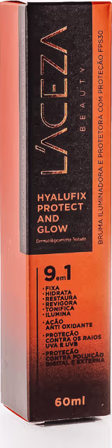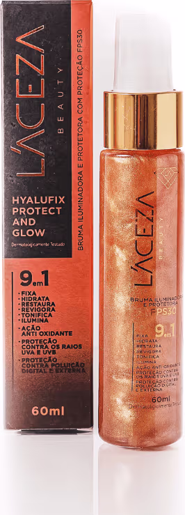 Bruma iluminadora. L'ACEZA Hyalufix Protect and Glow FPS 30 proporciona fixação, hidratação, proteção e maior luminosidade para uma maquiagem linda.