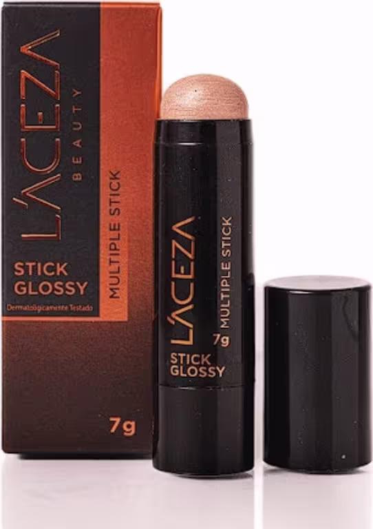 Iluminador em stick. L'ACEZA Stick Glossy promove lindo efeito glossy na pele e pode ser usado como iluminador, batom ou sombra.