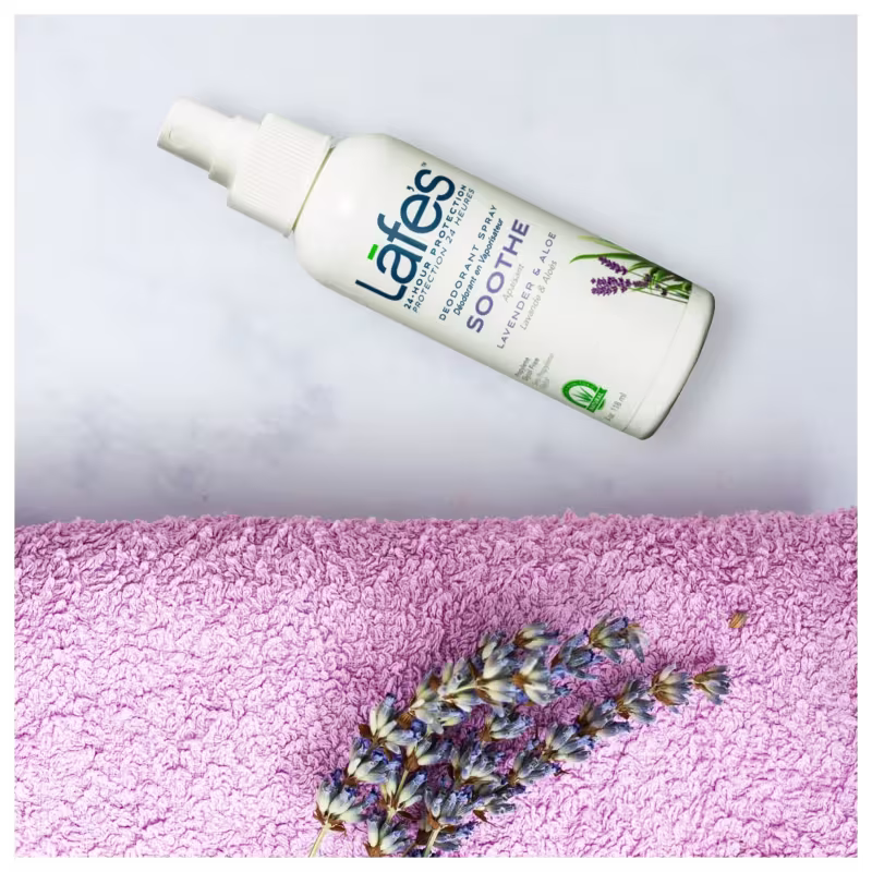 Desodorante spray. Lafe's Natural Lavanda oferece proteção duradoura por 24 horas mantendo suas axilas secas e com sensação de frescor.