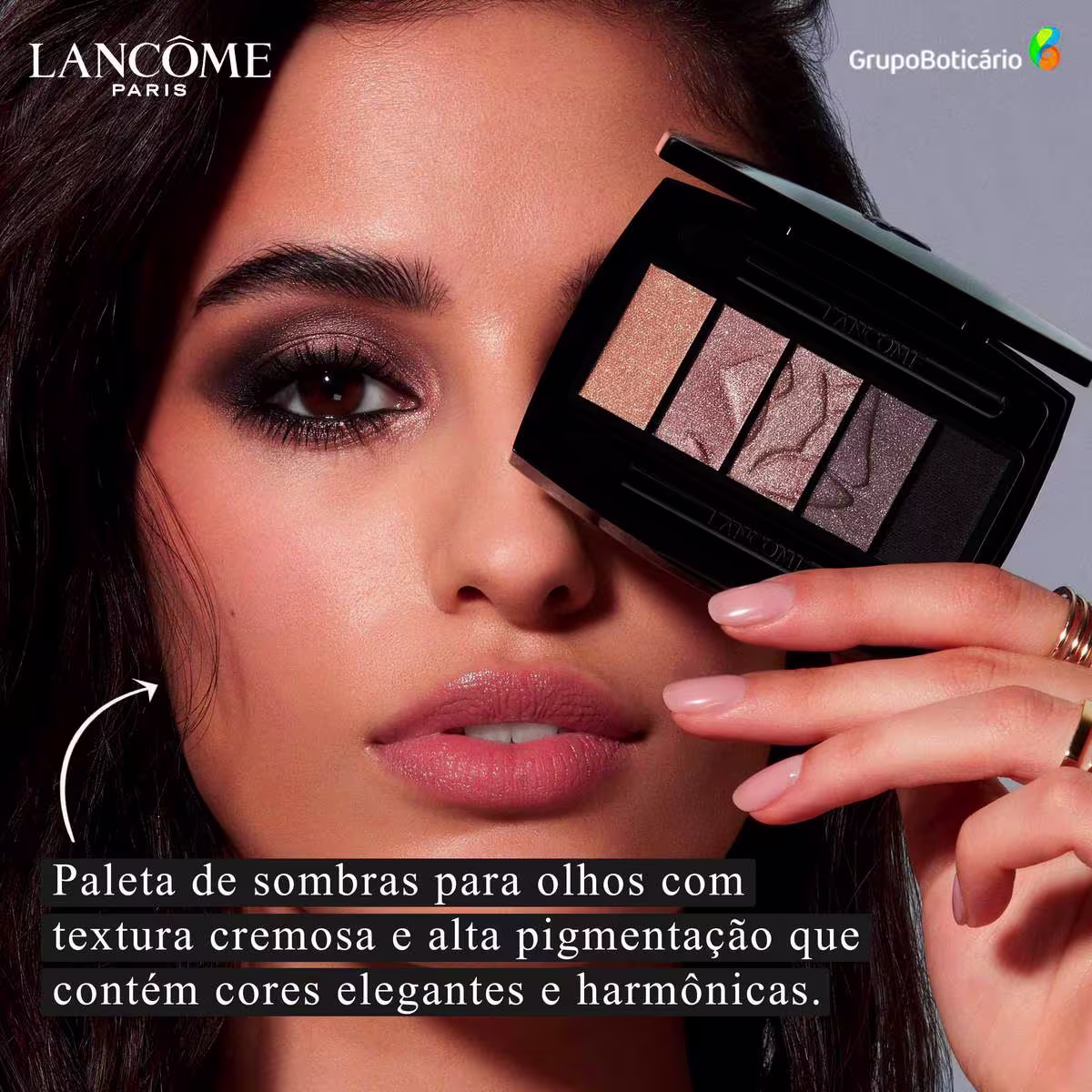 Paleta com 5 sombras. Lancôme Hypnôse 5-Color Palette traz cores elegantes, harmônicas e de acabamentos que vão do matte ao metálico para criar looks versáteis, seja para ocasiões diurnas ou noturnas.