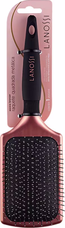 A Escova de Cabelo Lanossi com Cerdas Metálicas Bronzer tem almofada confortável e cerdas em nylon com proteção nas pontas, desliza facilmente entre os fios e estimula a circulação sanguínea massageando o couro cabeludo. Pode ser usada diariamente, proporcionando maior luminosidade aos fios. Além disso, possui cabo anatômico com textura em soft touch para maior conforto durante o uso, evitando que a escova escorregue.