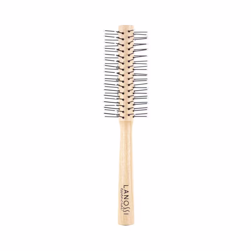 A Escova de Cabelo Lanossi Essencial Fio Único conta com cerdas de nylon naturais e cabo de madeira, sendo uma opção mais orgânica para você cuidar dos seus cabelos.