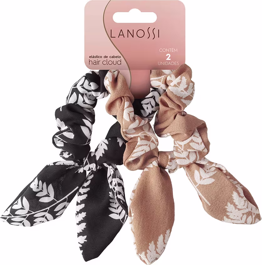 Scrunchie Lanossi Floral Preto e Bege: prende os cabelos e possibilita um visual cheio de estilo. Melhores Scrunchies de Lanossi na BLZ. Ver mais ❯
