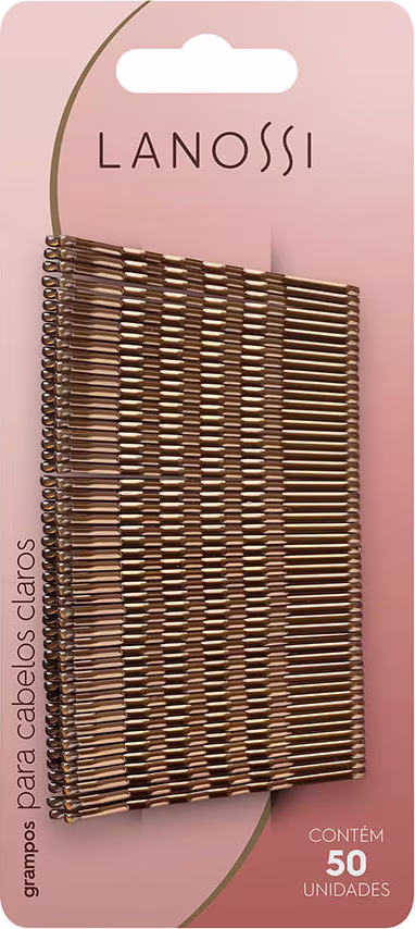 Os Grampos para Cabelo Lanossi Nº 6 Claro são fabricados em aço e possuem sustentação para ajudar a montar aquele look de arrasar! Ainda, contam com proteção nas pontas para não machucar o couro cabeludo. Vem em uma embalagem com 50 unidades de Nº 6 na cor dourada.