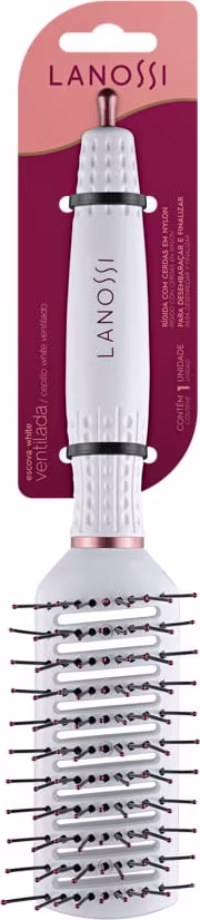 A Escova de Cabelo Lanossi White possui corpo ventilado que auxilia a passagem de ar do secador pela escova, otimizando e reduzindo o tempo de secagem. Suas cerdas em nylon com proteção nas pontas, desliza facilmente entre os fios, estimulando a circulação sanguínea.
