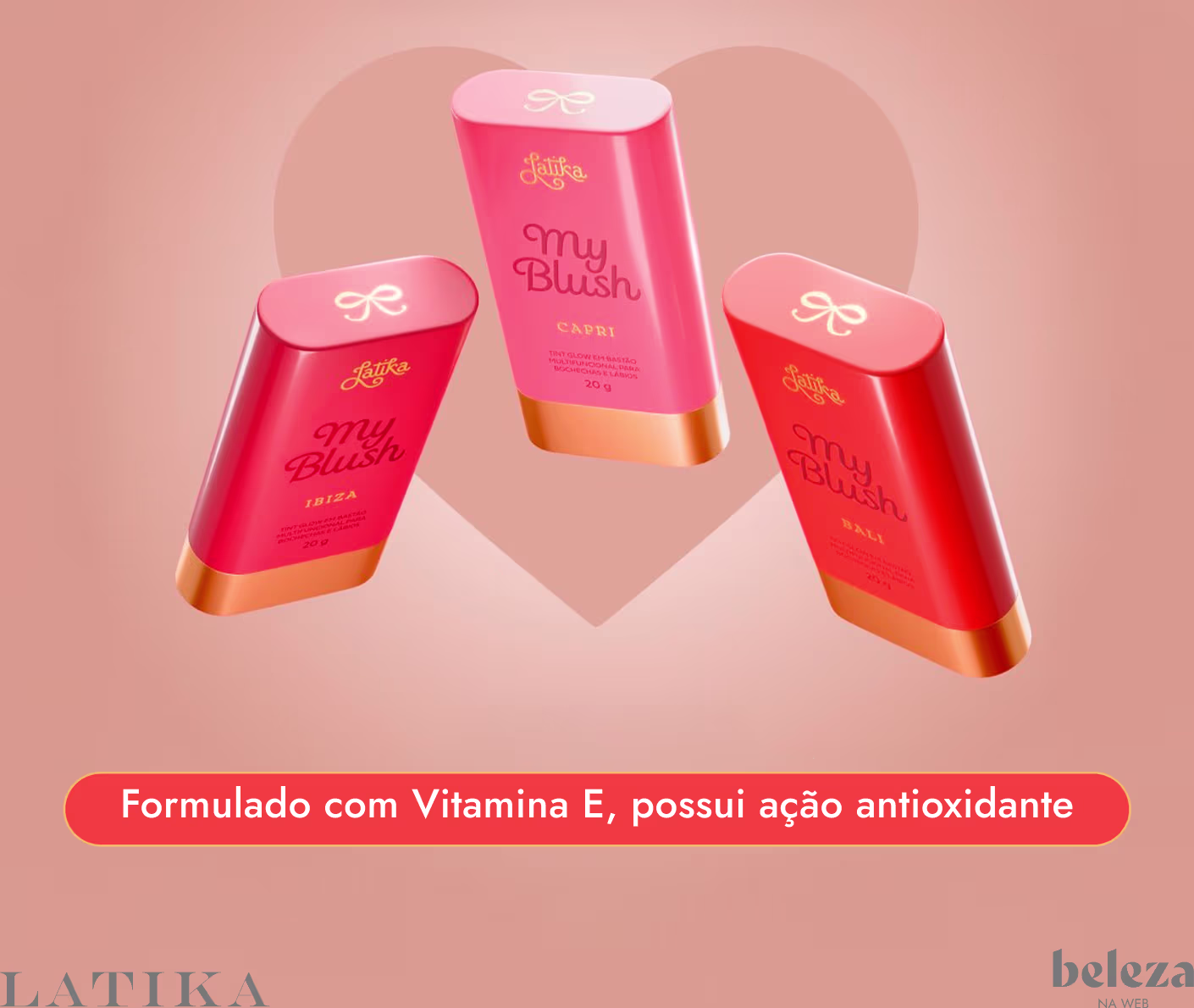 Blush Tint em Bastão Latika My Blush para uma maquiagem incrível. Melhores Maquiagens de Latika na BLZ. Ver mais ❯