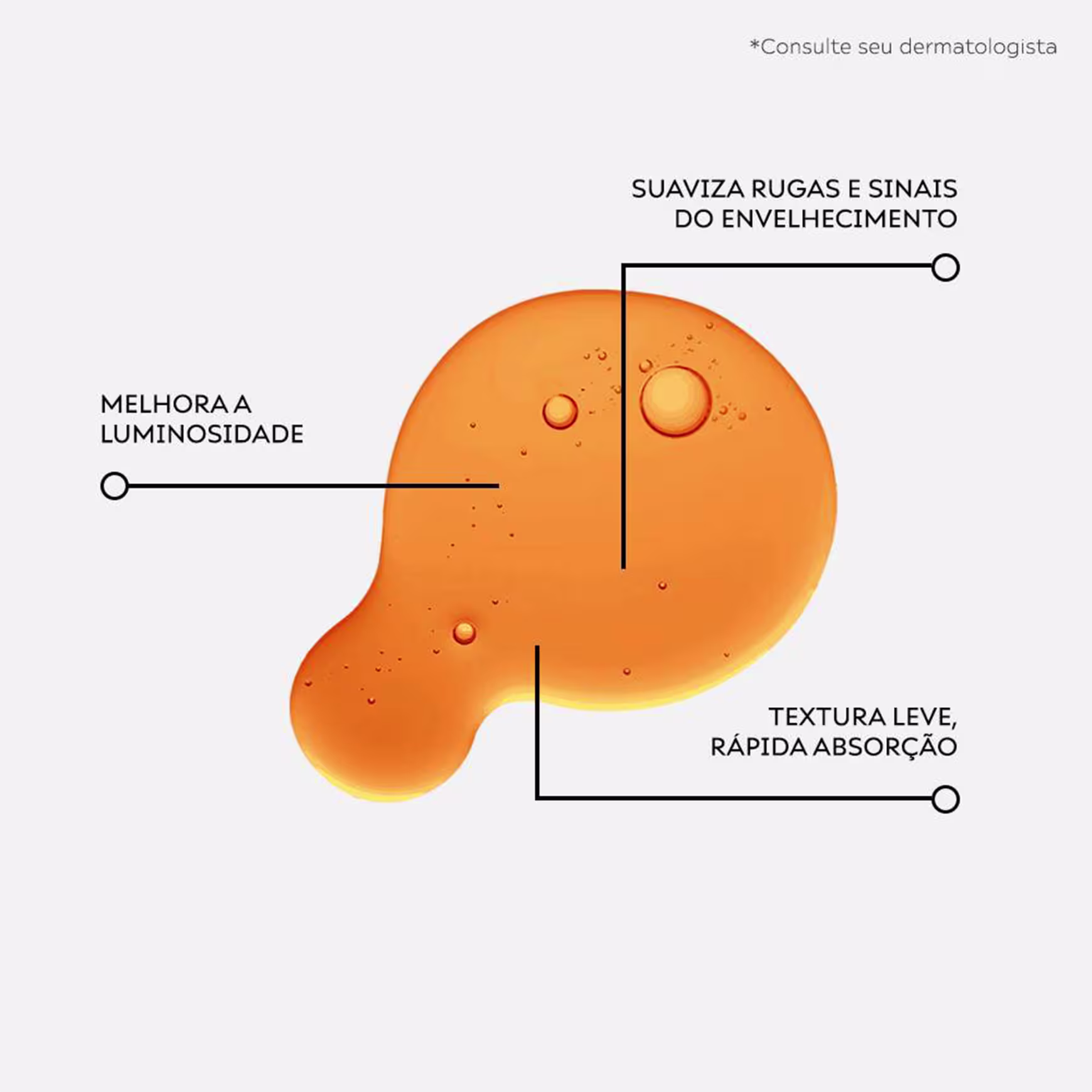 Sérum facial. Lecieza Antioxidante melhora a luminosidade da pele, enquanto combate rugas e sinais de envelhecimento.