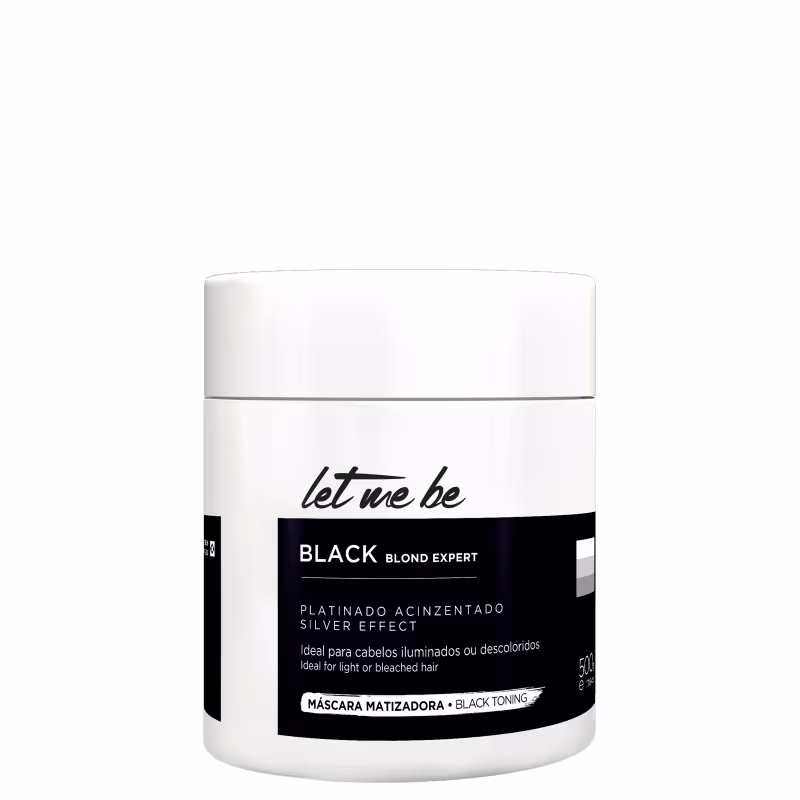 Máscara capilar para cabelos loiros, grisalhos e brancos. Let Me Be Black Platinado Acinzentado especialmente desenvolvida para remover o amarelado dos fios.