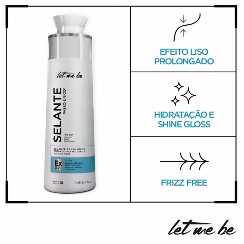 A Escova Semi Definitiva Let Me Be Selante Passo Único conta com a tecnologia CLX-E®, que é um silicone termo-ativo de ação condicionante capaz de proteger o cabelo e restaurar sua estrutura danificada. Além disso, mantém longa duração do efeito liso nas madeixas, ilumina e reduz significativamente o frizz.