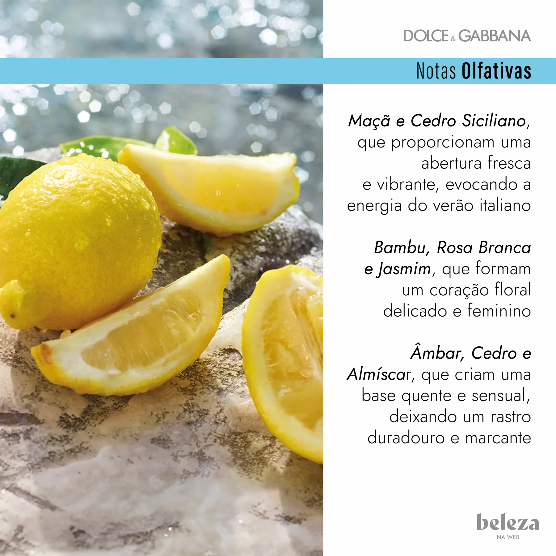 Perfume Light Blue Dolce & Gabbana: traduz a energia radiante do sol e o brilho das noites mediterrânea. Melhores Perfumes Dolce & Gabbana na BLZ Ver mais ❯