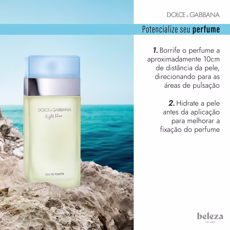 Light Blue Feminino está disponível nas volumetrias de: 25ml, 50ml,100ml e 200ml. Não deixe de conhecer também o perfume Light Blue Masculino.